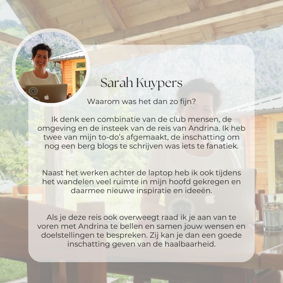 Uiteraard help ik je om structuur in de werktijd aan te brengen, door bijvoorbeeld schrijfsprints te faciliteren. Als je daar behoefte aan hebt. Als je specifiek op zoek bent naar ondersteuning van een ondernemerscoach en/of andere deskundigen, dan is dit niet de juiste workation voor je. Daar heeft Jeanet zelf een heel mooi aanbod voor, op een heerlijk zonnig eiland :D